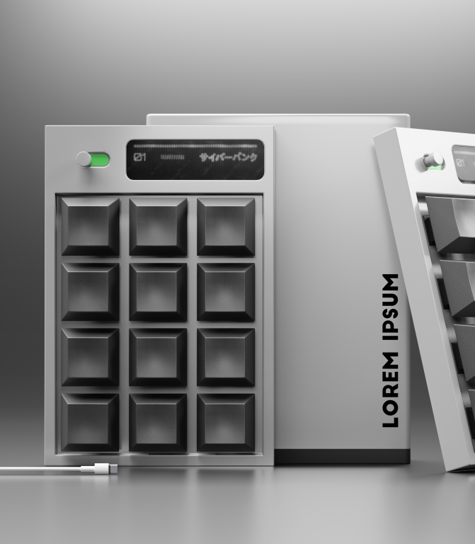 This project is a complete concept design and product visualization for a custom programmable macro keyboard. The design was conceived for creative professionals, streamers, and productivity enthusiasts who require a dedicated, high-performance input device.